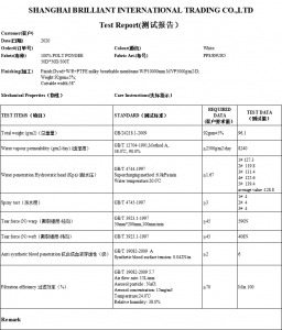 | Baigti | Apdaila: Dažyta+W/R+TPU pieniška kvėpuojanti membrana W/P10000mm MVP5000g/m2/D; Pjovimo plotis: 58" Svoris: 75 gsm ± 5 gsm |